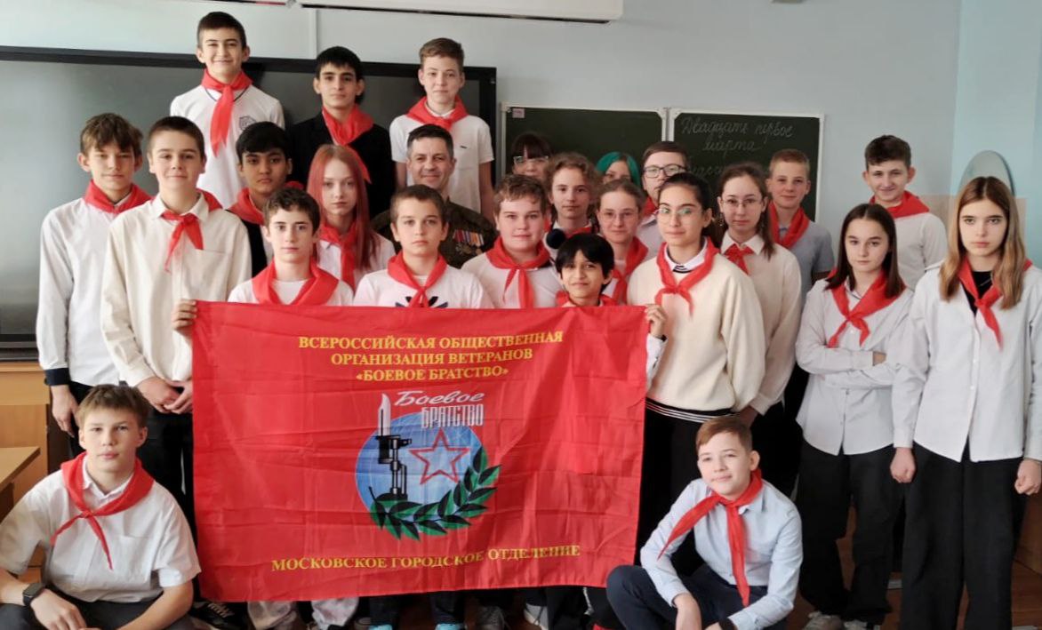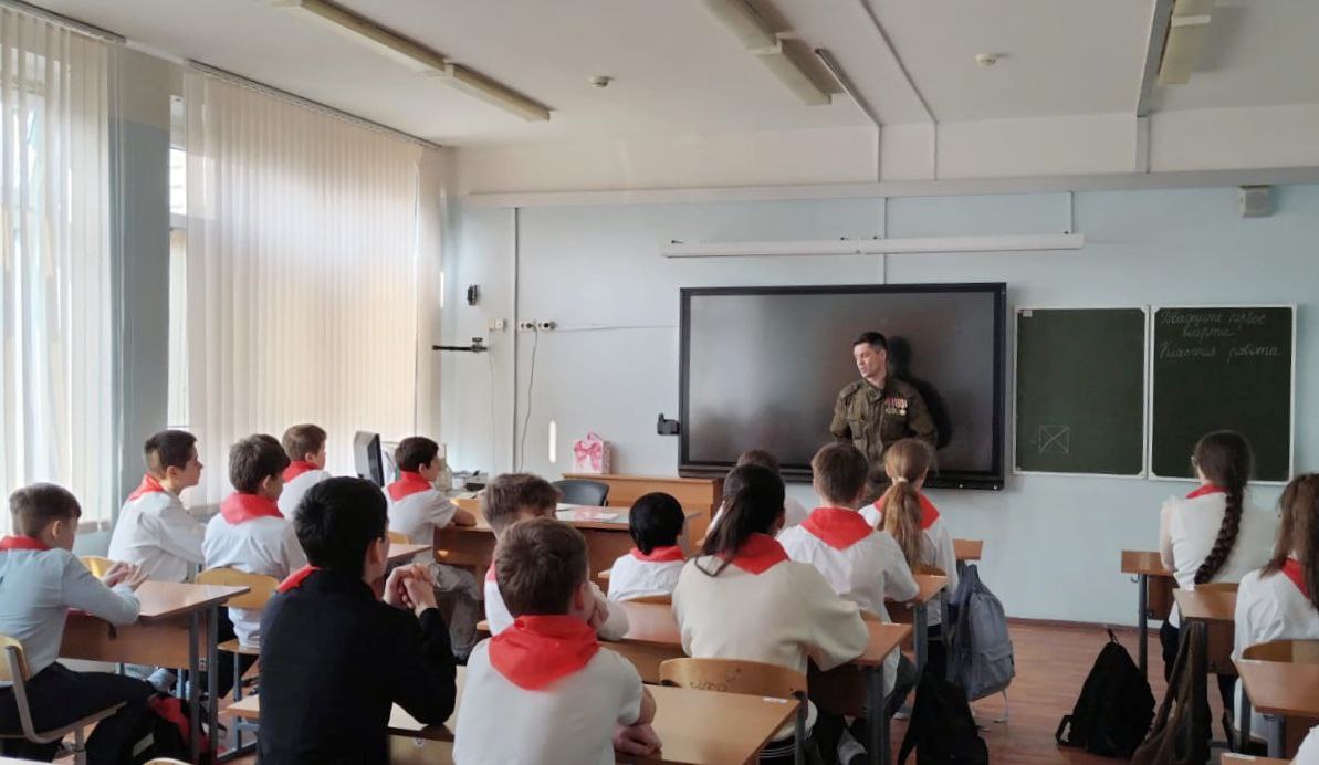 В гостях у ребят был младший лейтенант Леденев Роман Владимирович — старший специалист-эксперт Бутовского Военкомата. Роман Владимирович с честью прошёл две войны, защищая свою Родину. Он ветеран войны в Чеченской республике и участник специальной военной операции.