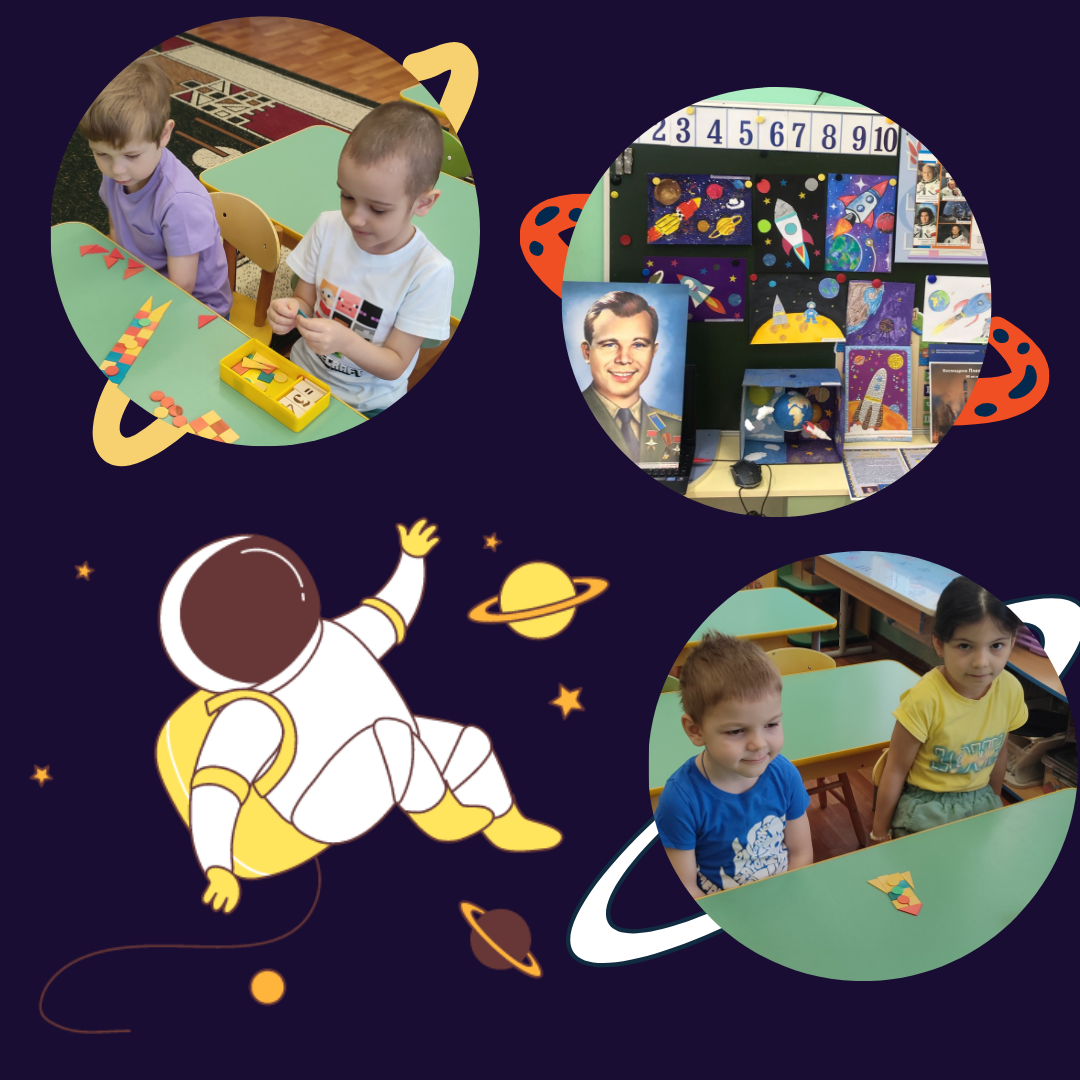 Ребята с огромным интересом погружаются в мир новых знаний. Они с лёгкостью отгадывают загадки и слушают стихи о космосе. Кроме того, они с энтузиазмом создают межпланетные ракеты из плоскостного конструктора, рисуют их в бескрайних просторах Вселенной и воплощают свои фантазии в аппликациях.