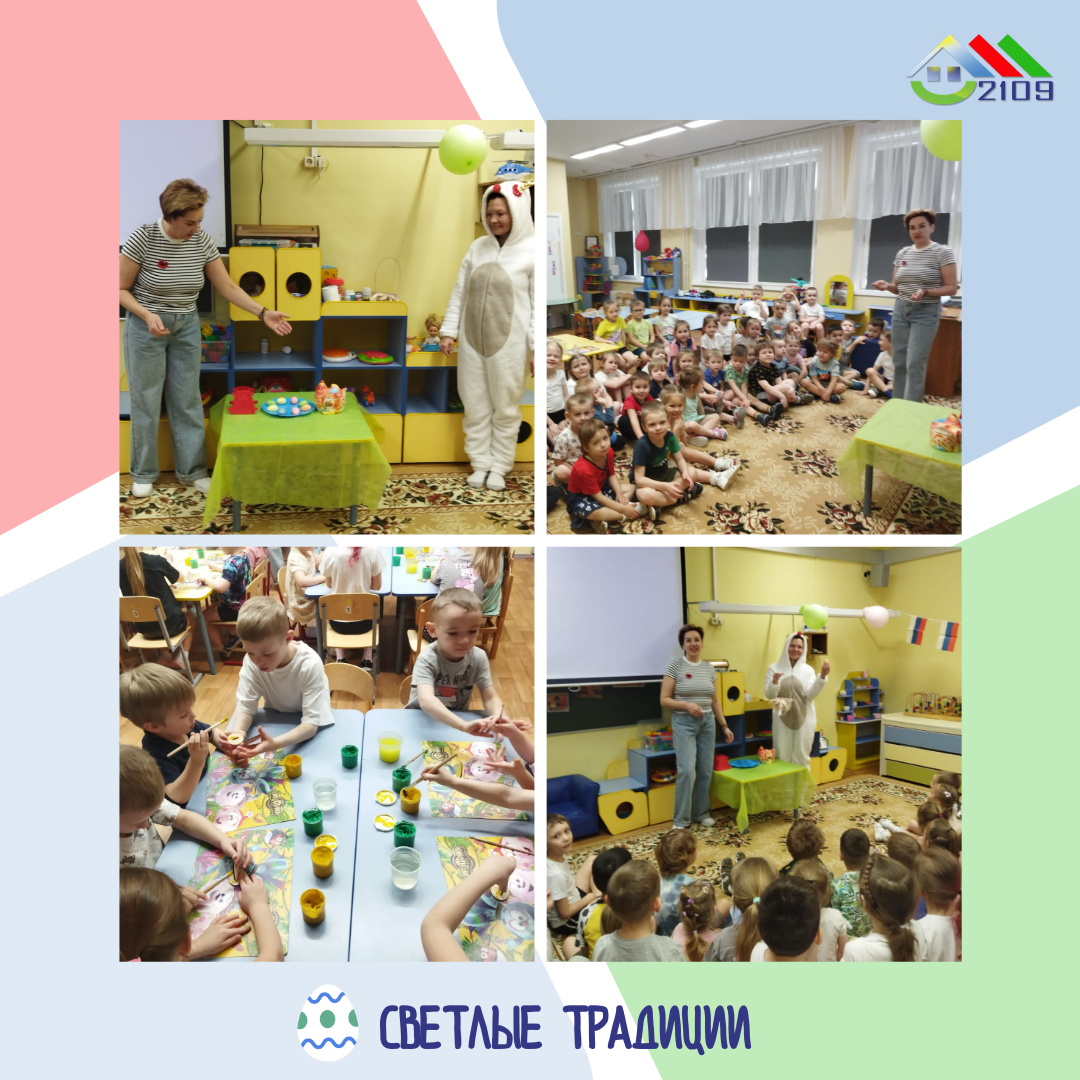 Во время праздника дети узнали о традициях и обычаях, которые связаны с этим светлым днём. Под руководством старших дошкольников малыши украсили пасхальные яйца.
