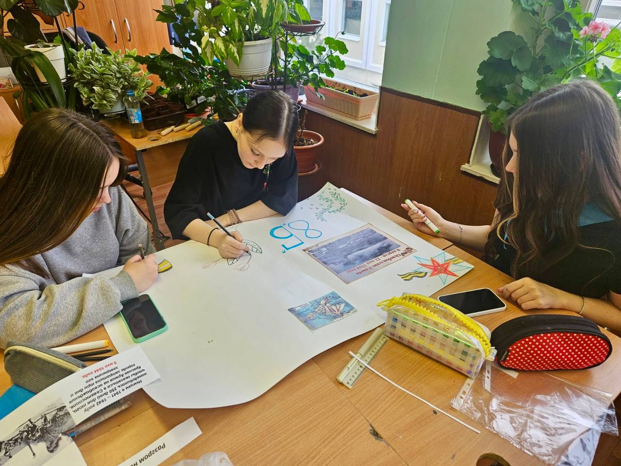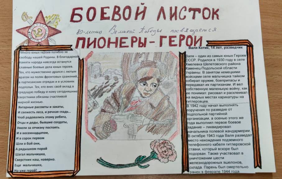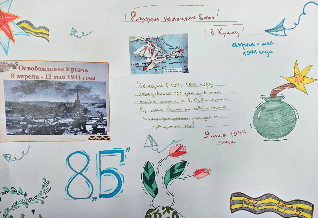 В преддверии 80-летия Великой Победы над фашизмом ученики школьного отделения «Алые паруса» приняли участие в акции памяти, в рамках которой выпустили тематические боевые листки.