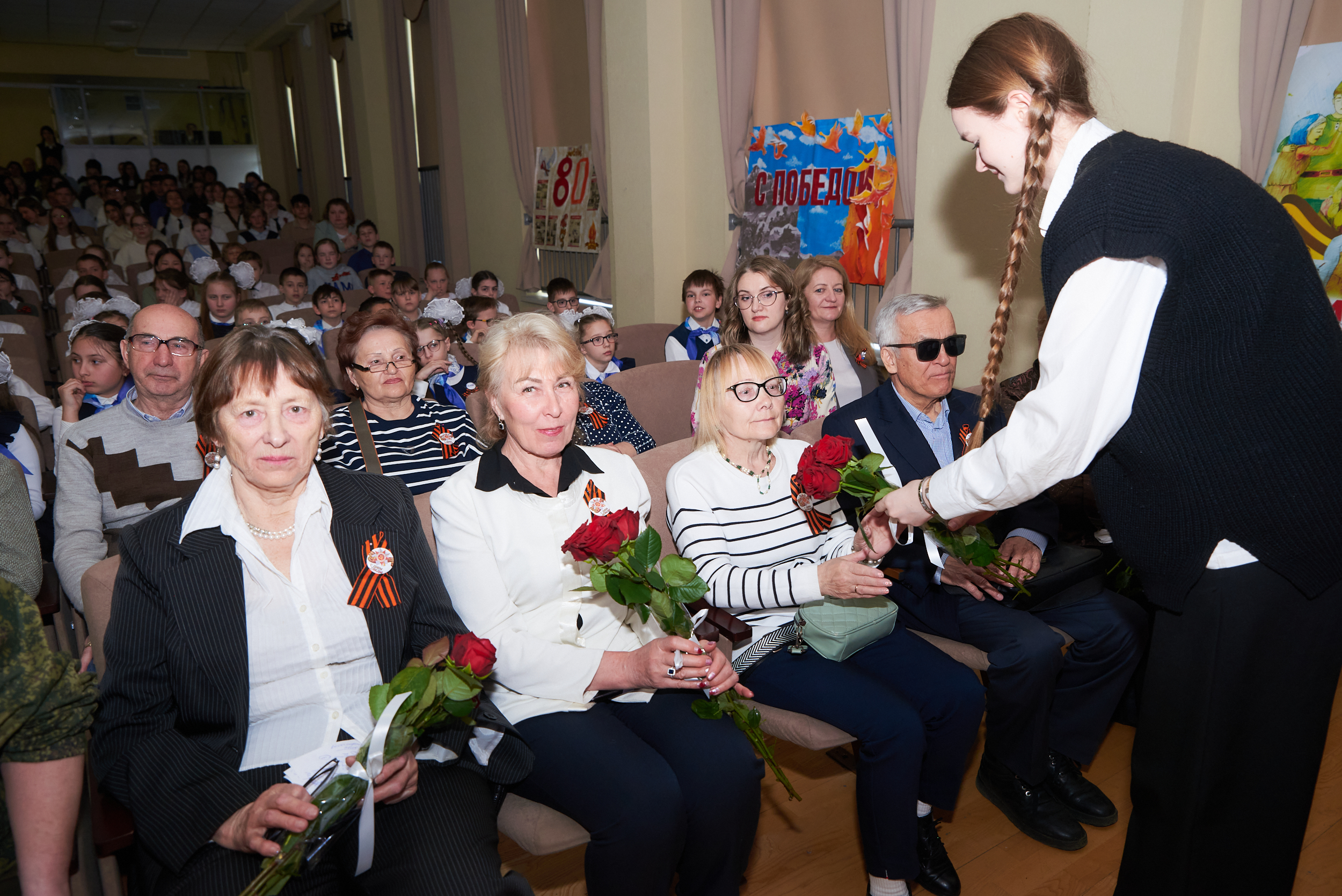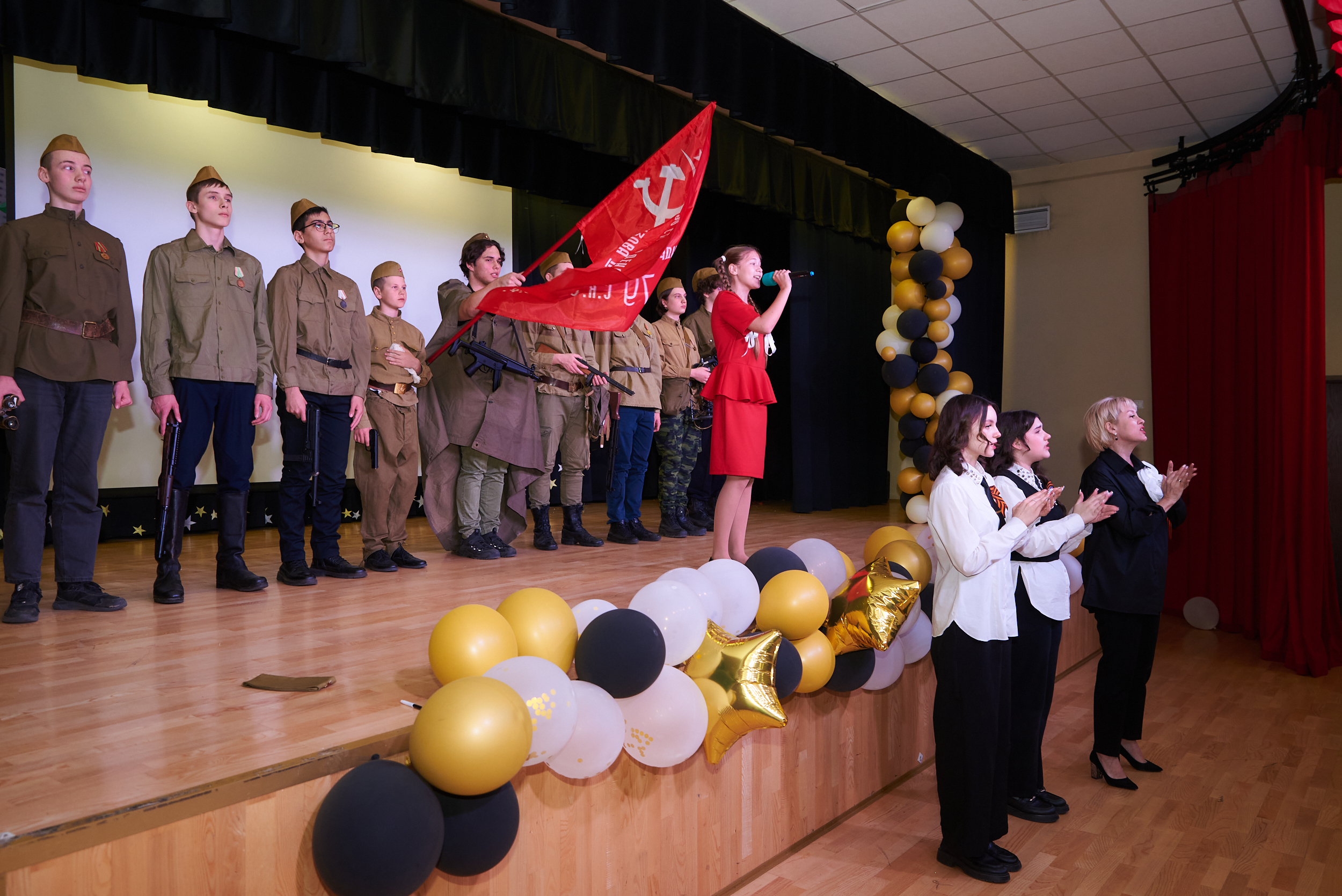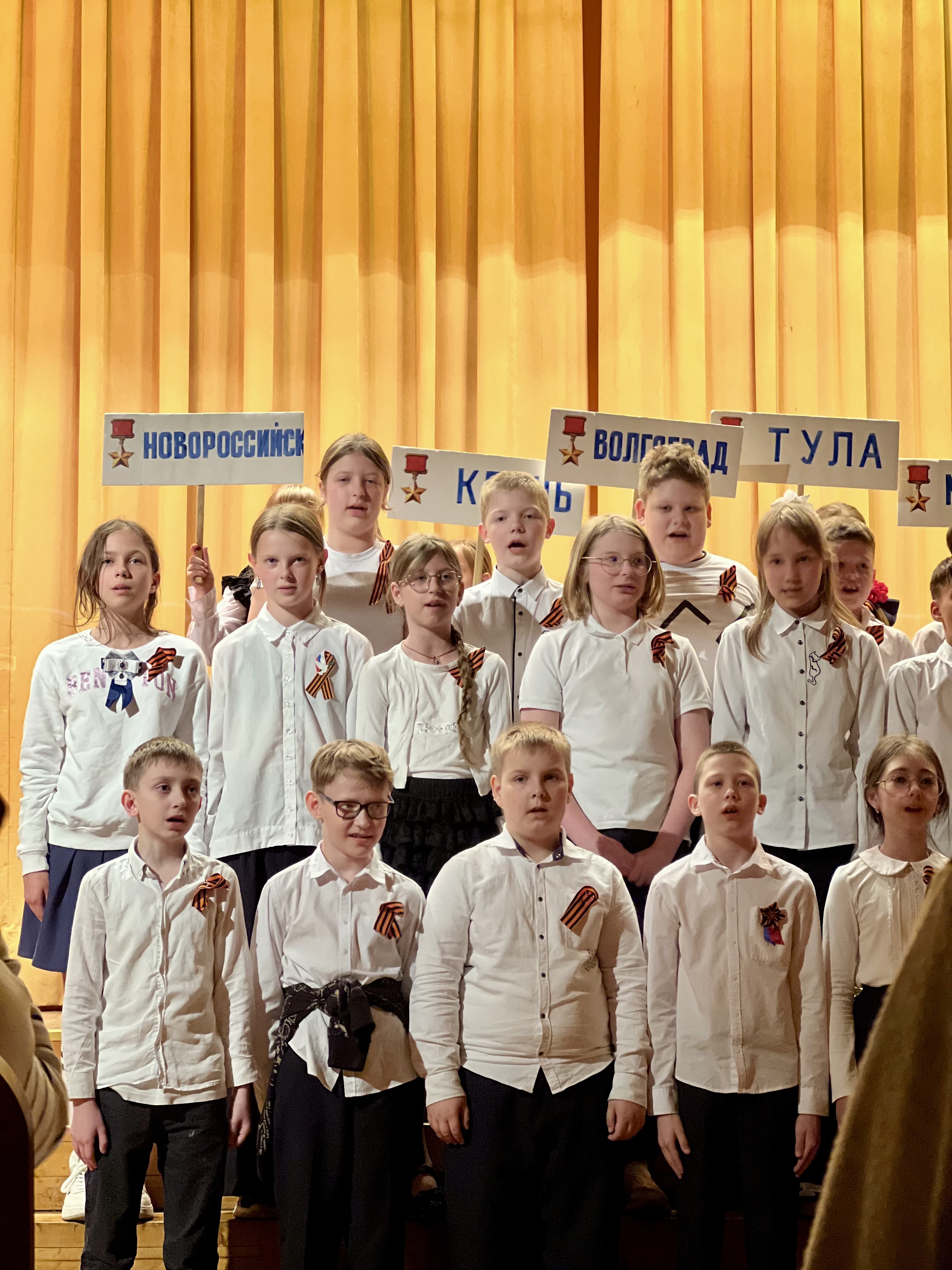 Ребята с 1 по 10 классы исполнили известные военные песни, среди которых были «От героев былых времен», «Журавли», «День Победы», представили театрально-постановочные номера про военных летчиц, Брестскую крепость и солдат, уходящих на фронт, а также прочли стихи собственного сочинения.