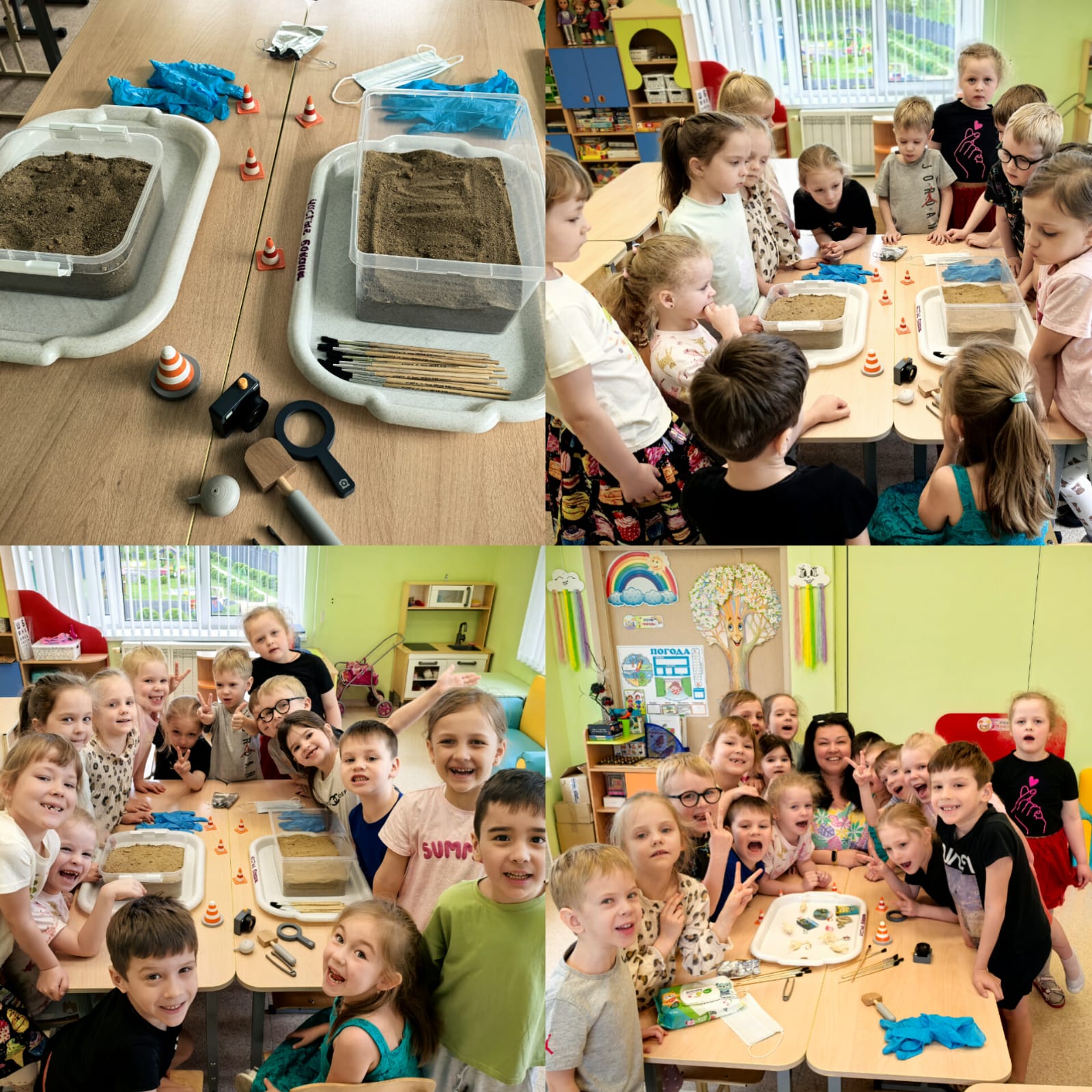 Дети из группы «Капельки» узнали, что археологи — это учёные, которые исследуют древние артефакты, путешествуя по миру. Им выпала уникальная возможность примерить на себя роль настоящих исследователей! Воспитатель Скаредина Н. С. подготовила для них увлекательное занятие — раскопки.