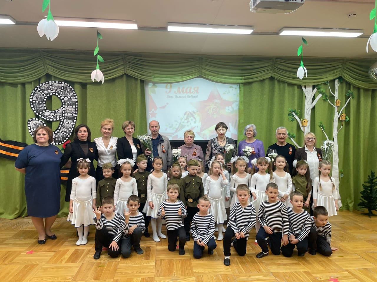На праздник были приглашены представители Совета Ветеранов, которые поделились своими воспоминаниями и рассказали детям о значении этого великого дня. Юные артисты подготовили проникновенные номера: песни, стихи и танцы, которые тронули сердца всех присутствующих.