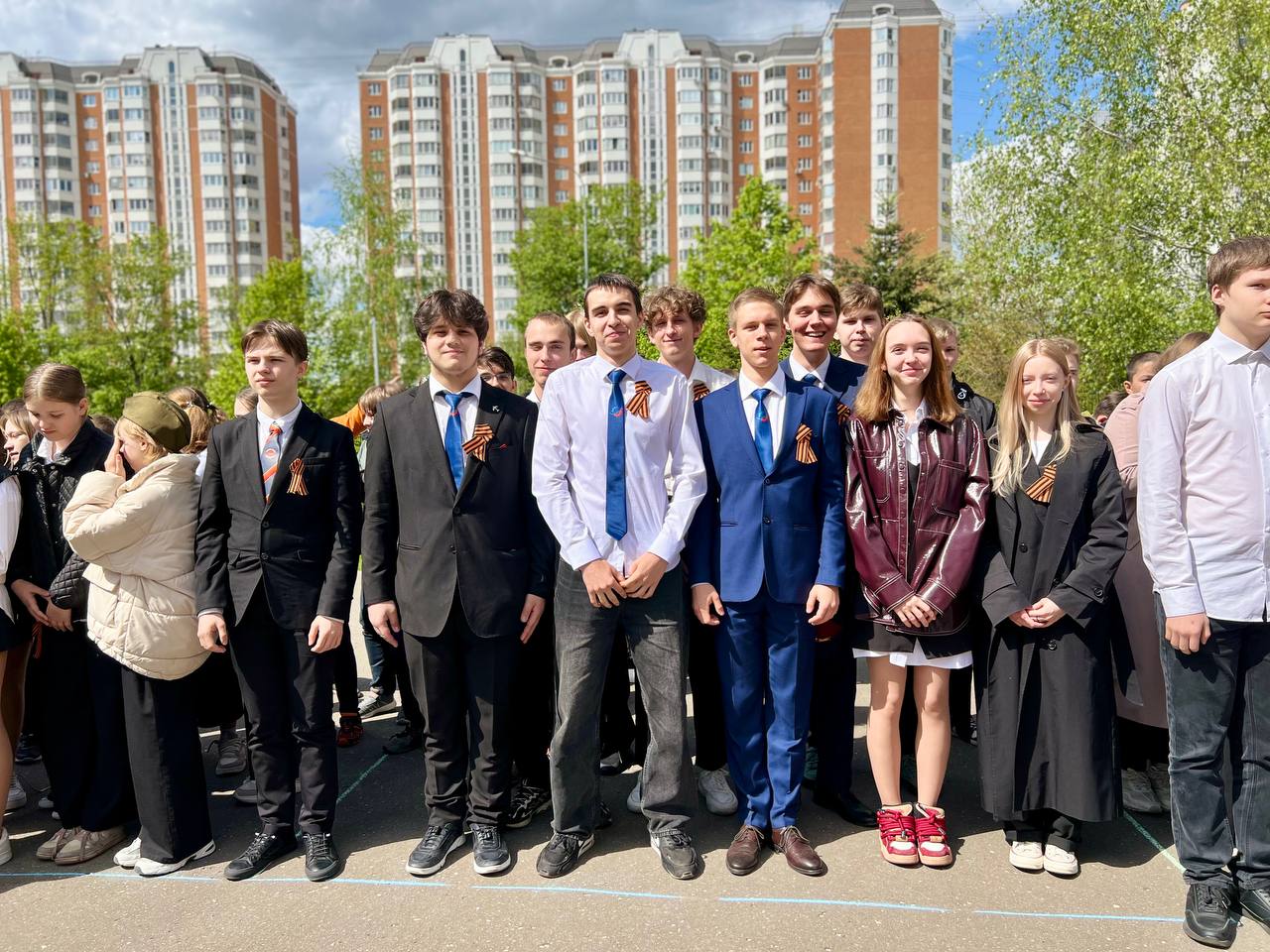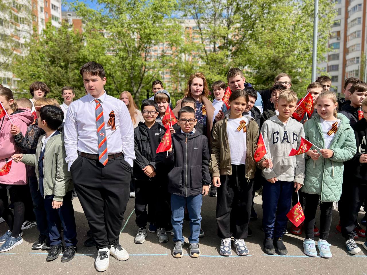 Ребята почтили память героев минутой молчания и стояли вместе с «Бессмертным полком», гордо подняв портреты своих родных, сражавшихся за свободу и мирное небо над головой.